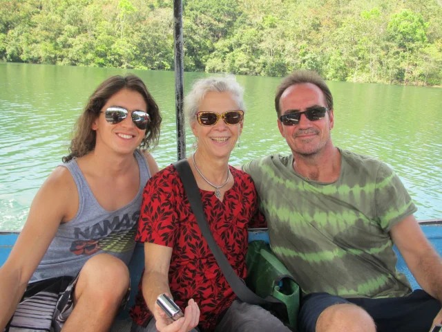 Enjoying the last day after the test on a boat ride around the lake with two other graduates.